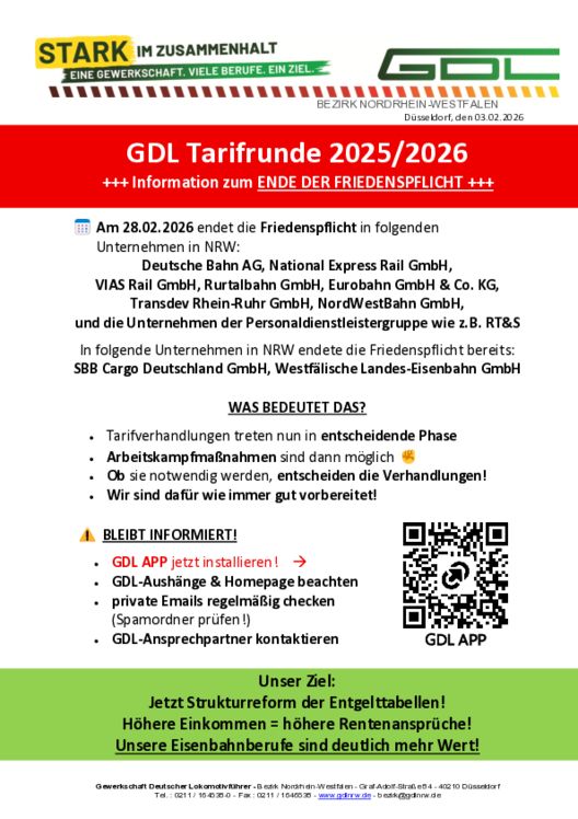 - GDL-Aushänge & Homepage beachten