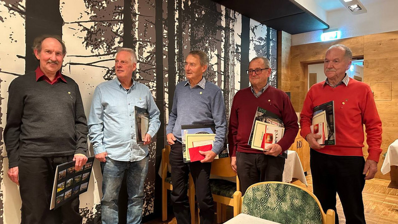 von links nach rechts: Hans Guggenberger (40 Jahre), Karl Bader (50 Jahre), Engelbert Huber (50 Jahre), Albert Steck (50 Jahre) und Ludwig Streitle (50 Jahre).