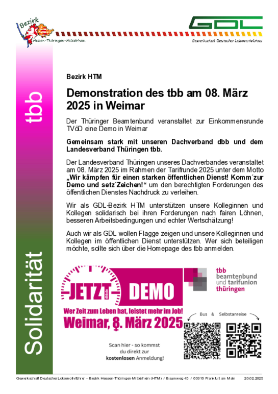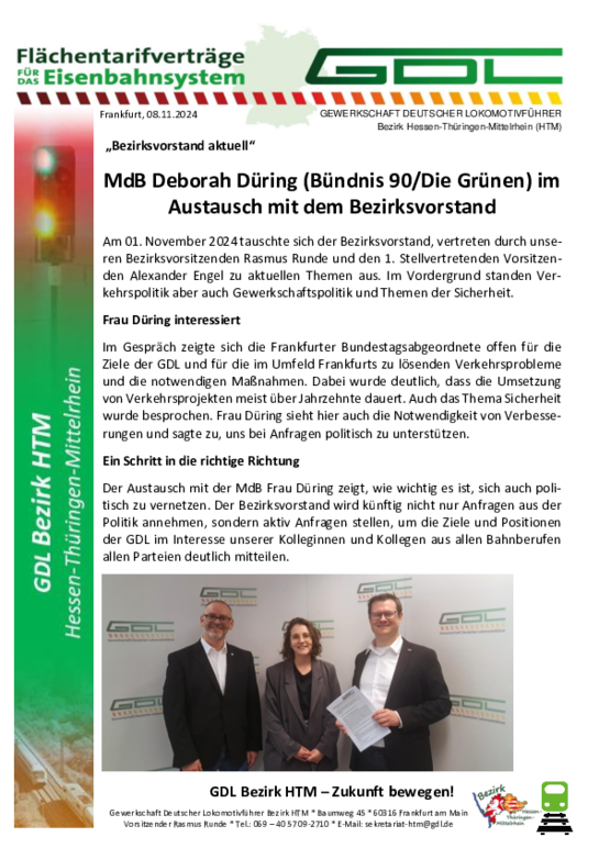 Wir als GDL-Bezirk HTM unterstützen unsere Kolleginnen und