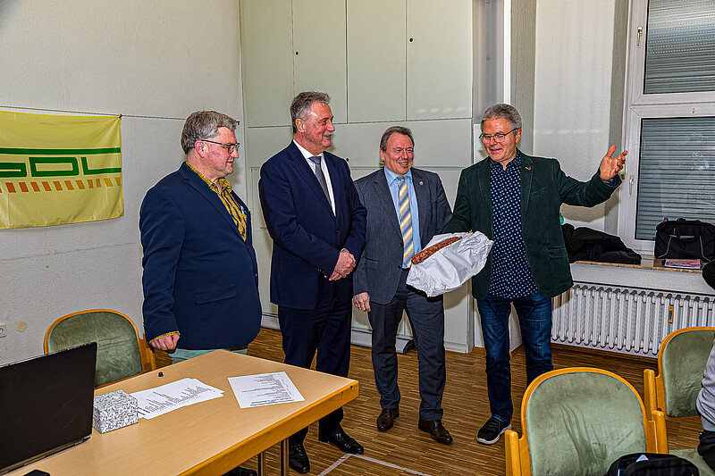Zum Schluss verabschiedete noch unser langjähriger Ortsgruppenvorsitzende Thomas Mühlhausen die Bundesvorsitzenden auf ihren Heimweg und gab ihnen noch die nordhessische Spezialität mit auf den Weg: eine Stracke.