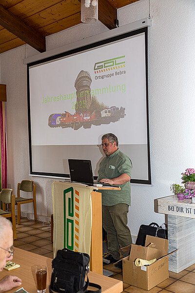 Günther Kinscher hielt eine Ansprache an die anwesenden Mitglieder, um aufzuzeigen, was die GDL in den vergangenen 20 Jahren erreicht hat für das Zugpersonal.