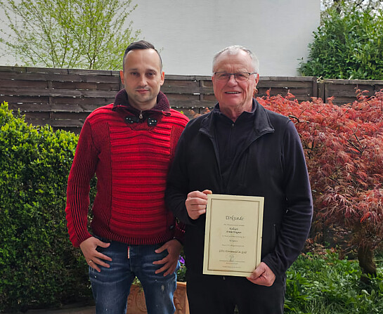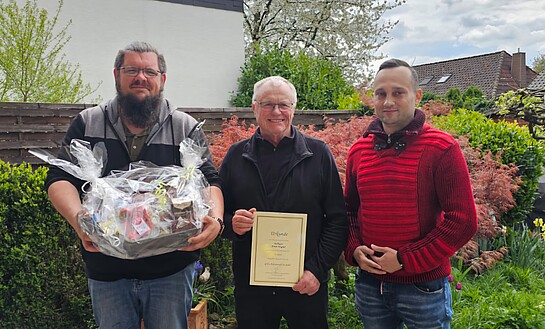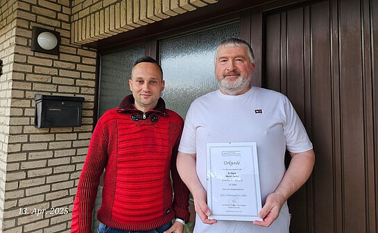 Am 13.04.2025 durften wir im Rahmen von Hausbesuchen drei langjährige Gewerkschaftsmitglieder ehren: Zwei für jeweils 25 Jahre und eines für beeindruckende 50 Jahre Mitgliedschaft. Wir bedanken uns herzlich für ihre jahrzehntelange Solidarität und ihr Vertrauen in unsere gemeinsame gewerkschaftliche Arbeit.