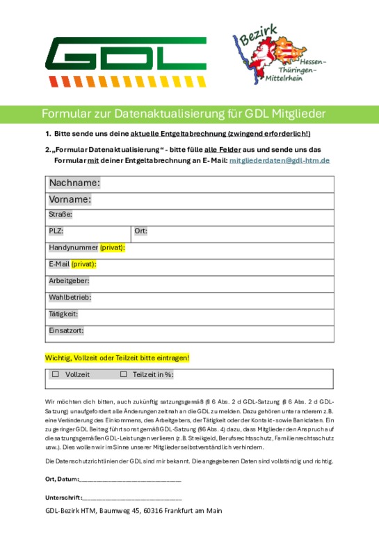 nach dem erfolgreichen Abschluss der Tarifrunde 2024 haben wir nun die zweite Lohnerhöhung erhalten. Gemäß unserer GDL-Satzung sind wir verpflichtet, jede Lohnänderung der Gewerkschaft zu melden.