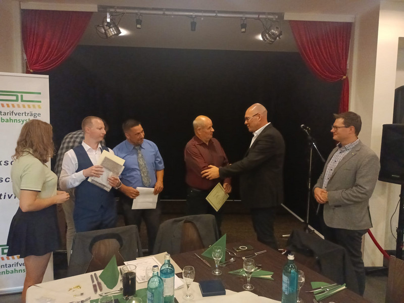 Die Feier bot zudem einen passenden Rahmen, um ein langjähriges Mitglied für 25 Jahre Zugehörigkeit zur GDL zu ehren. Diese Anerkennung wurde von allen Anwesenden mit großer Wertschätzung aufgenommen und rundete den Abend würdig ab. Insgesamt ein gelungener Abschluss eines ereignisreichen Jahres.