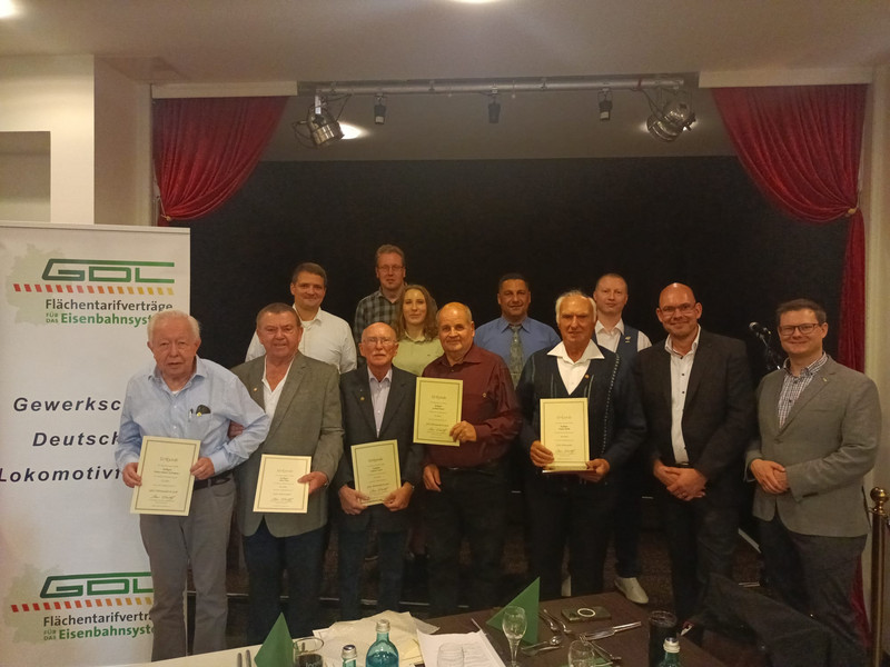 Ein besonderer Höhepunkt der Veranstaltung war die Ehrung langjähriger Mitglieder. Darunter befanden sich Gewerkschaftsmitglieder, die bereits seit 60 Jahren in der GDL organisiert sind. Die Namen der Geehrten, Hans Feid, Walter Böhm, Hans-Dieter Arnold, wurden mit großem Applaus genannt. Auch die Mitglieder, die seit 50 Jahren, Gerhard Bunt, Rudolf Kreer, Manfred Zissler, Edwin Lutter, Heinz-Dieter Hartmann, Horst Frömel und 25 Jahren, Alfred Weihrich, Jan Ahrens Teil der GDL sind, wurden feierlich gewürdigt.