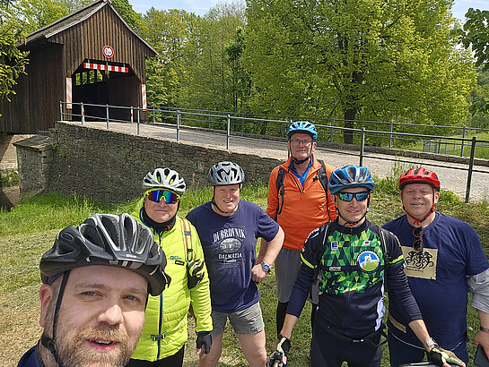 Mit dem Start in Lengefeld-Rauenstein ging es entlang der Flöha durch das malerische Flöhatal. Vorbei an touristischen Hotspots wie der Floßmühle; dem Wandbild am Turbinenhaus Borstendorf - wo Schüler aus dem Landkreis Mittelsachsen und dem Erzgebirgskreis mit Pinsel und Farbe ihre Heimatverbundenheit zum Ausdruck gebracht haben, wobei das Geweih des Hirsches die beiden Flüsse Flöha und Zschopau darstellen. Nachdem die Sitzkunstwerke aus Beton bestaunt wurden, ging es weiter in Richtung Grünhainichen zur Rochhausmühle, um eine erste Stärkung einzunehmen. Danach fuhren wir weiter in Richtung Hohenfichte, mit einem Stop an der alten Holzbrücke für ein kurzes Fotoshooting ;)