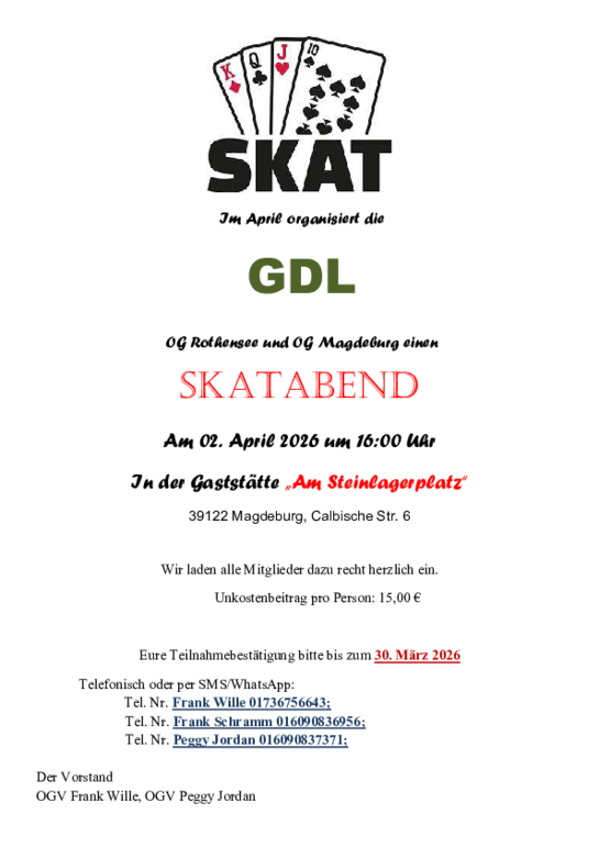 Bitte meldet eure Teilnahme bis zum 30.03.2026 an Peggy Jordan oder Frank Schramm!