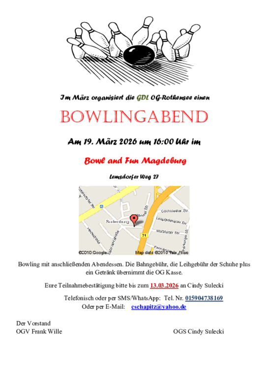 Ort: "Bowl and Fun", Lemsdorfer Weg 27, 39112 Magdeburg