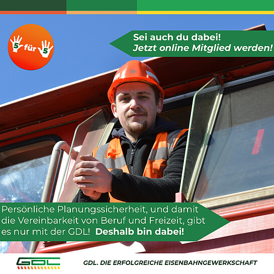 Wir empfehlen ausdrücklich die Verwendung. Für weiteres Informationsmaterial wende Dich bitte an Deine GDL-Ortsgruppe oder Deinen GDL-Bezirk.