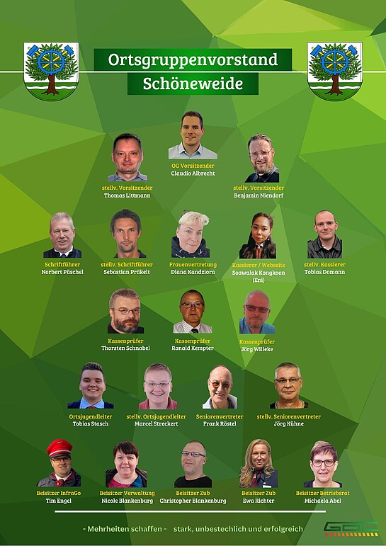 Hier stellt sich der Ortsgruppenvorstand Schöneweide vor - ein Team aus unterschiedlichen Persönlichkeiten, das sich mit Herz und Engagment einsetzt und das eins gemeinsam hat: