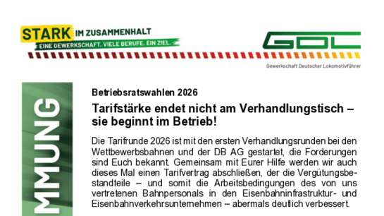 auf dieser Seite erfahrt ihr Demnächst mehr über die anstehenden Betriebsratswahlen in den Betrieben DB Cargo, DB Regio, DB Fernverkehr, ODEG und alle Wettbewerbsbahnen. Außerdem stellen sich ab diesem Zeitpunkt unsere Kandidaten vor.