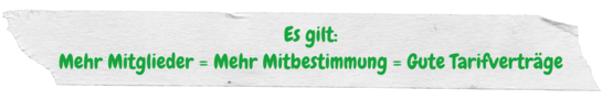Damit aber auch Tarifverträge geschlossen werden können, brauchen wir eure Unterstützung als Mitglieder.