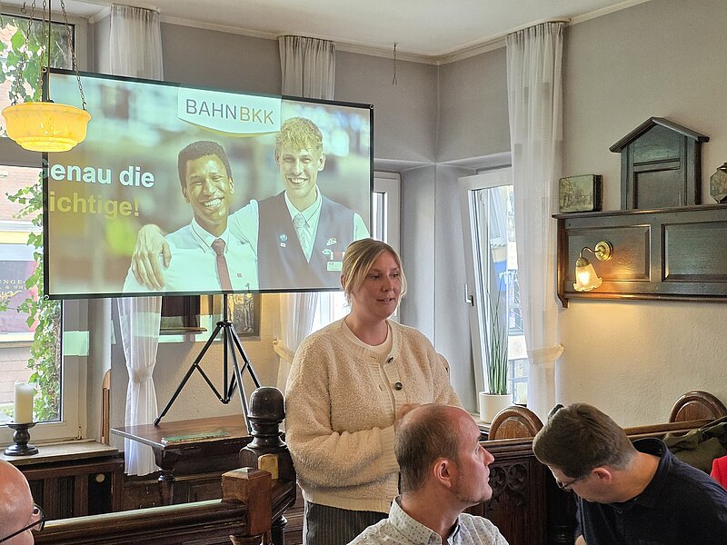 Als Nächstes kam Peter Roland als Vertreter des FairnessPlan- und FairnessBahnen-Vereins zu Wort. Er stellte die allgemeinen Leistungen der Vereine vor und ging insbesondere auf die Leistung „Fortbildung 50 plus“ ein. Im Anschluss präsentierte die DEVK als besonderer Partner im Eisenbahnbereich ihre speziell für Eisenbahner interessanten Leistungen. Dirk Wordtmann hatte dafür dieses Mal Verstärkung aus der Regionaldirektion Münster mitgebracht. Das erste Mal konnten wir auch Frau Kriens von der Bahn-BKK als Gast gewinnen, die uns Einblicke und Informationen zur Bahn-Krankenkasse gab.