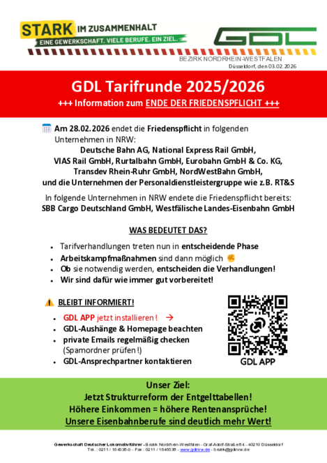 Schneller informiert sein als andere - über aktuelle GDL News aus Tarifrunden, euren Betrieben, der Region und eurer GDL Ortsgruppe - auch bei Arbeitskämpfen!…