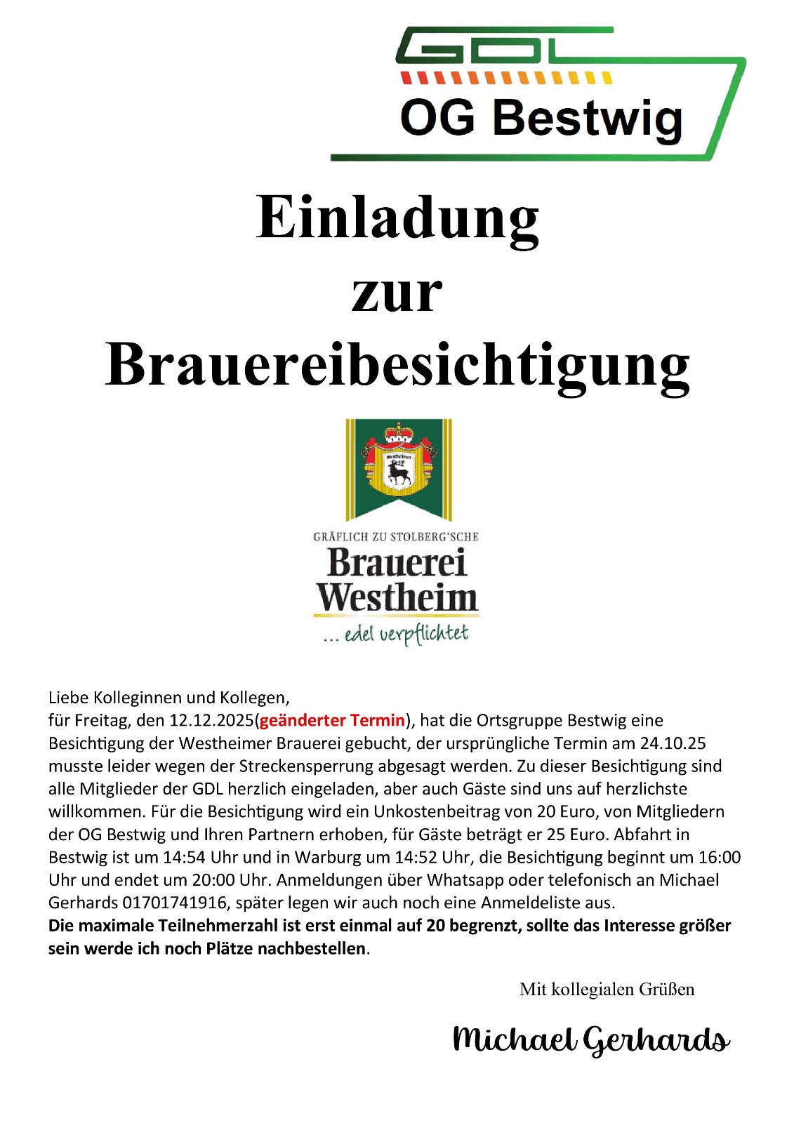 Da euch die Brauereibesichtigung im letzten Jahr gefallen hat, veranstalten wir auch in diesem Jahr eine Brauereibesichtigung in der Westheimer Brauerei.