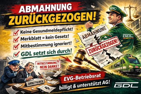 Der Arbeitgeber DB Regio AG im Wahlbetrieb Saarland Süd (R.5.2) hat eine gegen einen Kollegen ausgesprochene Abmahnung wegen angeblich fehlender „Gesundmeldung“…