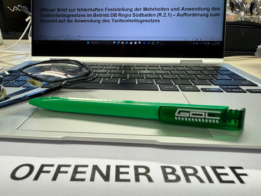 Nach der gewonnen Betriebsratswahl 2022 und der Delegiertenwahl zur AR-Wahl 2025 haben wir DB Regio Südbaden in einem offenen Brief dazu aufgefordert die Anwendung des TEG aufzugeben.