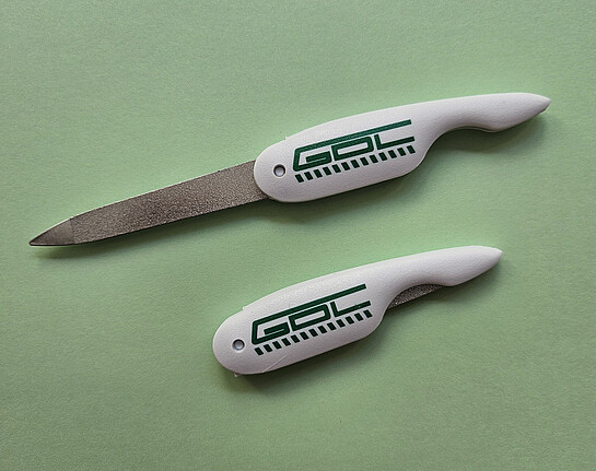 Gepflegte Hände sind unerlässlich für einen guten Auftritt. Die handliche Nagelfeile (74x18x8 mm) mit grünem GDL-Logo passt in jede kleine Tasche und ist dadurch ein praktischer, täglicher Begleiter. Sie ist klappbar und somit hygienisch und sicher zu verstauen.