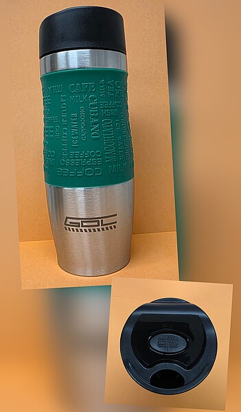 Ein verlässlicher Begleiter im Beruf sowie auch im privaten Bereich, ist unser neuer Thermobecher. Durch die grüne, griffige Silikonmanschette liegt er immer sicher in der Hand. Unser Thermobecher hält durch seine Vakuum- und Kupferisolationstechnik Ihre Getränke extrem lange heiß oder auch kalt. Er hat ein Fassungsvermögen von 380 ml und ist durch seinen tropfsicheren Dichtverschluss absolut auslaufsicher. Mit der „Open-Close-Funktion“ lässt er sich auch einhändig öffnen und wieder verschließen.