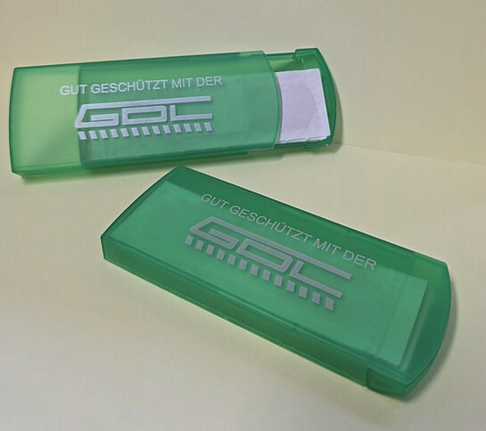 Gut geschützt mit der GDL. Auch in kleinen Dingen wie mit unserer neuen Pflasterbox. Die kleine Kunststoffbox mit Schiebedeckel beinhaltet fünf Pflaster und passt in jede Tasche.