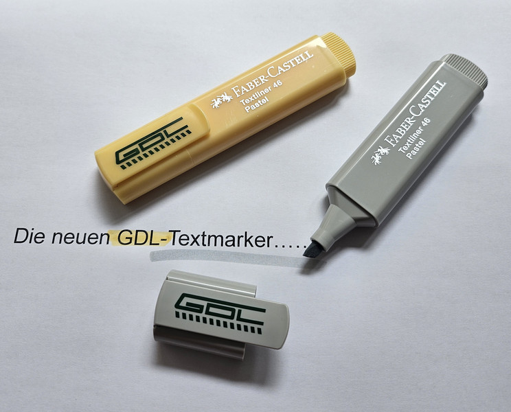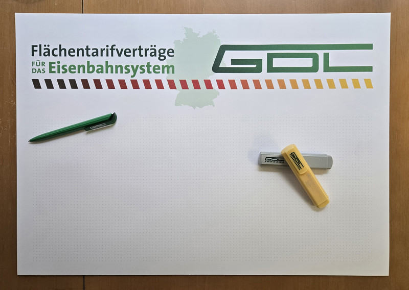 Die GDL bietet ihren Mitgliedern die Möglichkeit, über ihre Ortsgruppe eine Reihe nützlicher und qualitativ hochwertiger Werbemittel in GDL-Ausführung zu bestellen. Das Angebot wird regelmäßig um interessante Artikel erweitert. Achtung: Die Bestellung ist nur für GDL-Mitglieder möglich. Diese können die aufgeführten Artikel über ihre jeweilige Ortsgruppe beziehen.