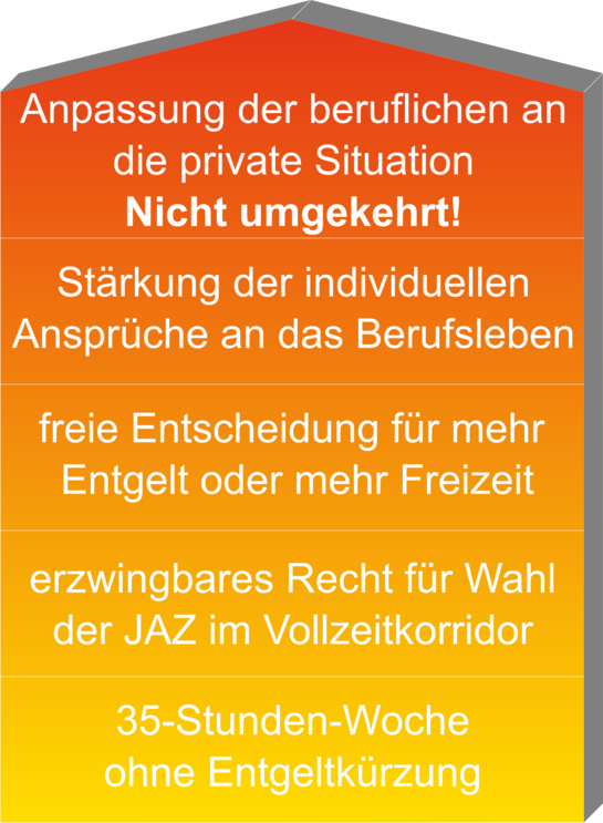 Grundsätzlich haben alle durch die Absenkung der Wochenarbeitszeit deutlich mehr Ruhe, vor allem in Kombination mit der grundsätzlichen Fünf-Tage-Woche, die sich natürlich auch in der Jahres-, Monats- und Wochenplanung widerspiegelt, also mit verbindlich zugesagter Freizeit. Wir haben berechnet, dass es bis zu 22 Tage mehr sind, wenn man die 38-Stunden-Woche mit der 35-Stunden-Woche vergleichen würde.